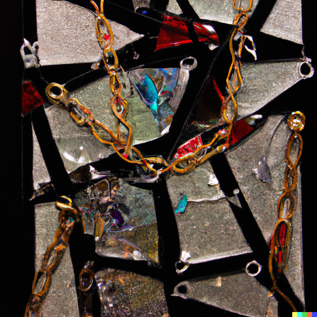 This piece of art uses broken chains and broken glass to symbolize the fractured relationships caused by parental alienation. My inspiration was to try to convey the devastating emotional impact of estrangement on myself and my family.